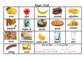Describing food in welsh word mat bwyd second language welsh reception foundation phase ks1.